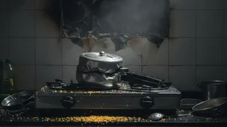 खाना बनाते समय फटा कूकर। (AI Generated Image)