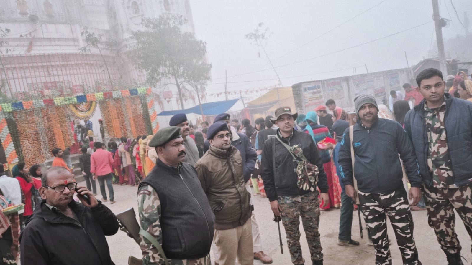 नीलकंठ नर्मदेश्वर महादेव मंदिर परिसर में सुरक्षा व्यवस्था में रामनगर थानाध्यक्ष के नेतृत्व में तैनात पुलिस बल