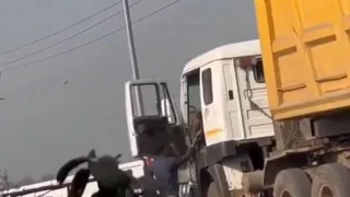 ट्रक से वसूली के पैसे लेता युवक। वीडियो से ली तस्वीर।