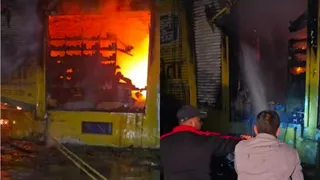 शटर तोड़कर पाया आग पर काबू, तीन मंजिला है दुकान