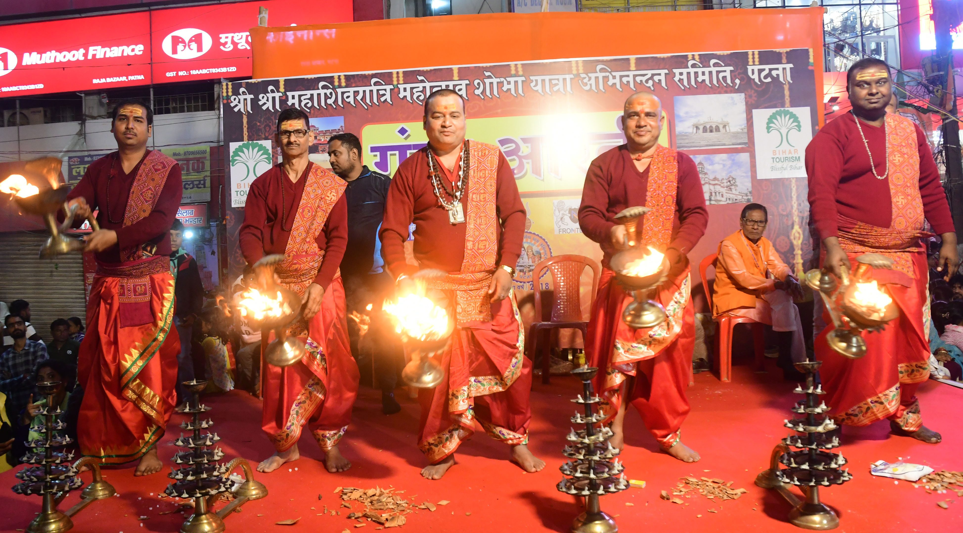 मुख्य मंच पर सोमनाथ मंदिर की तर्ज पर सजावट और 33 फीट ऊंचे शिवलिंग की आकृति आकर्षण रही। दूसरे मंच पर कलाकारों ने मंत्रोच्चार के बीच गंगा आरती प्रस्तुत की।