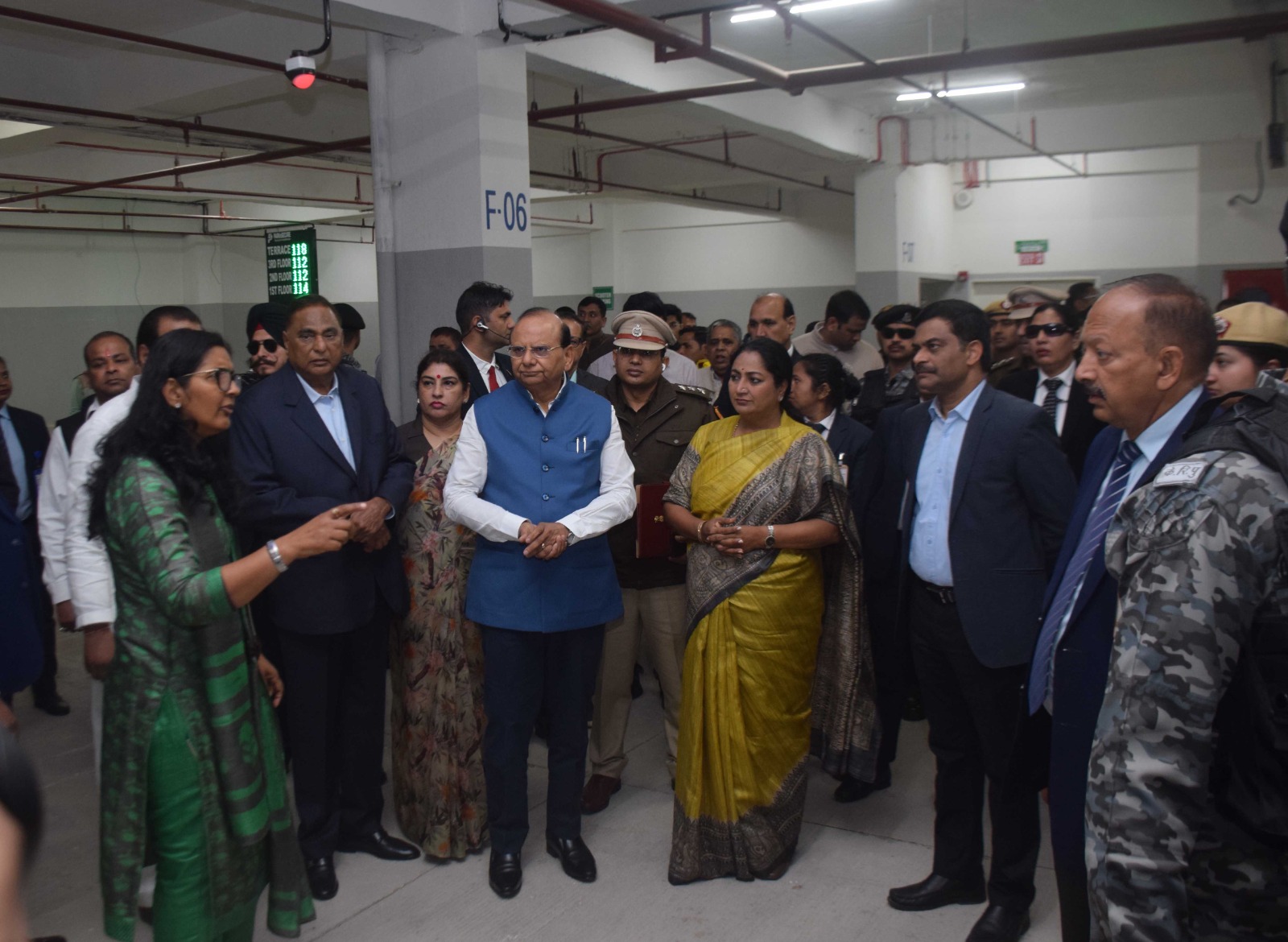 नेहरू प्लेस में मल्टीलेवल पार्किंग का उद्घाटन करते एलजी वीके सक्सेना व मुख्यमंत्री रेखा गुप्ता।