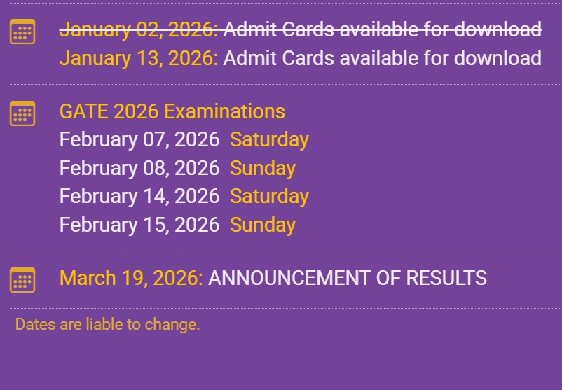 आईआईटी गुवाहाटी की ऑफिशियल वेबसाइट पर दी गई जानकारी के मुताबिक गेट 2026 एग्जाम रिजल्ट अगले माह 19 मार्च 2026 को घोषित किया जायेगा। परिणाम की घोषणा फाइनल उत्तर कुंजी को ध्यान में रखकर की जाएगी। एग्जाम से जुड़ी लेटेस्ट अपडेट के लिए अभ्यर्थियों को समय समय पर ऑफिशियल वेबसाइट पर विजिट करने की सलाह दी जाती है।