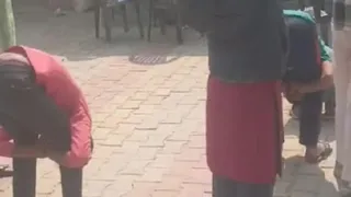 अमरोली उर्फ बड़ा गांव में स्थित उच्च प्राथमिक विद्यालय में बच्चों को मुर्गा बनाया गया। वीडियो ग्रैब
