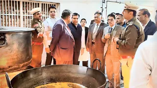 जिला कारागार में कैदियों व बंदियों के लिए बनाए गए रसोई घर का निरीक्षण करती आयोग की टीम। सौ. प्रशासन