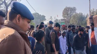 प्रयागराज के झूंसी में कुलदीप की निर्मम हत्या के बाद जुटी भीड़ व पुलिस। जागरण