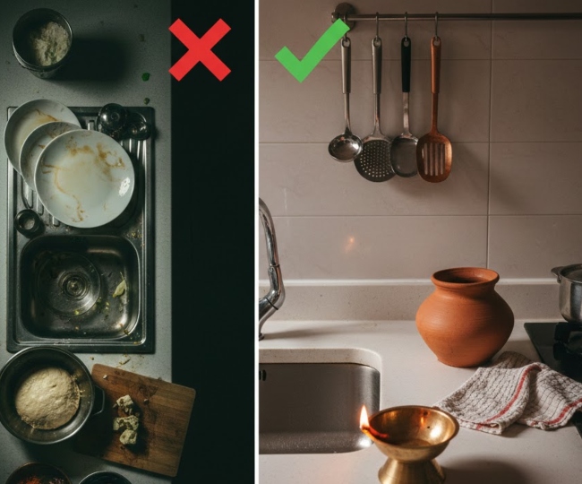 धर्म डेस्क, नई दिल्ली। वास्तु शास्त्र के अनुसार, रसोई घर केवल खाना बनाने की जगह नहीं है, बल्कि यह घर की सुख-समृद्धि का मुख्य केंद्र भी है। अक्सर हम दिनभर की थकान के बाद रात को रसोई को वैसे ही छोड़ देते हैं, लेकिन आपकी यह एक छोटी सी लापरवाही घर की बरकत को रोक सकती है।
