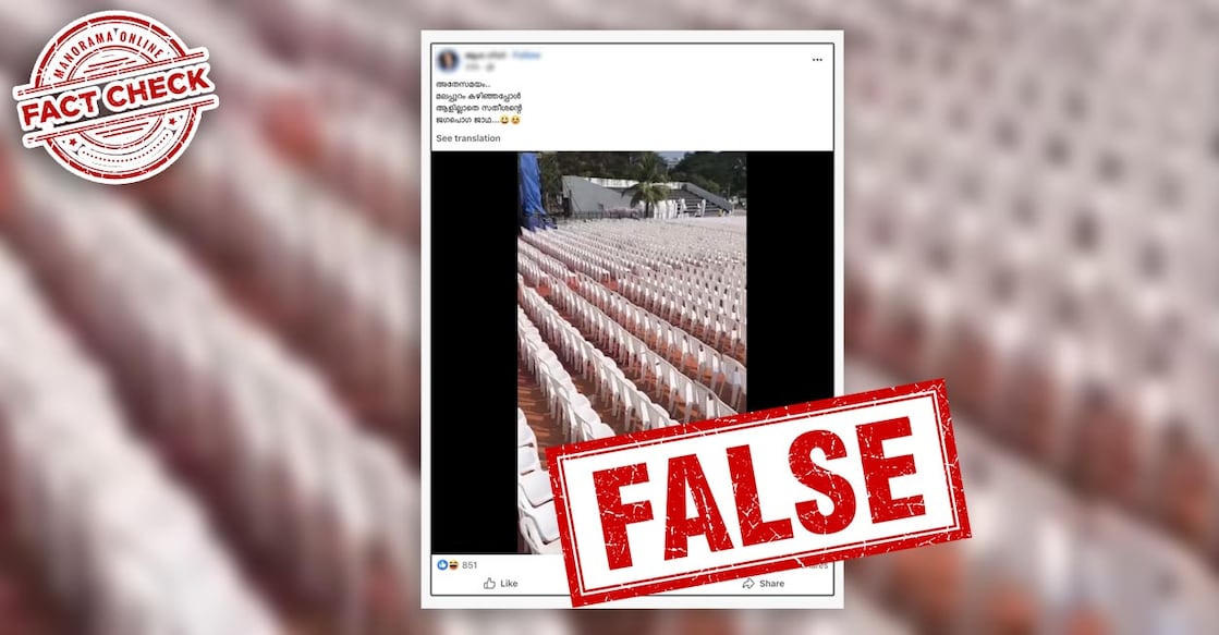 The viral video showing empty chairs at a rally is not from VD Satheesan\“s UDF Puduyuga Yathra, but from the closing ceremony of the Kerala Yathra led by Kanthapuram AP Aboobacker Musliyar. This misinformation is being spread to mislead the public about the attendance at political events. |