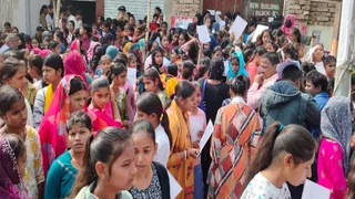 एम एल एकेडमी स्कूल में मैट्रिक परीक्षा की दूसरी पाली की परीक्षा देने के लिए प्रतीक्षा में परीक्षार्थी। जागरण