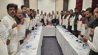 धनबाद मेयर चुनाव के लिए संकल्प पत्र जारी करते कांग्रेस नेता।