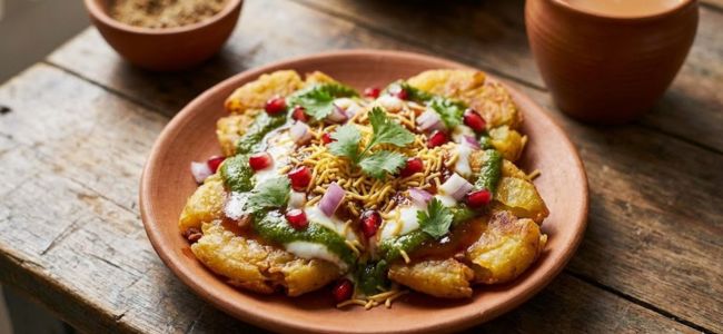 - आखिर में, बारीक कटा हुआ प्याज, ताजा हरा धनिया और ढेर सारी बारीक नमकीन सेव डालकर इस चाट को तुरंत सर्व करें। ध्यान रहे, इसे गरमा-गरम ही खाएं ताकि आलू का क्रंच बरकरार रहे।