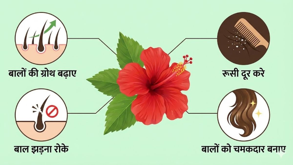 - बालों की ग्रोथ में सहायक- गुड़हल की पत्तियों और फूलों से बना हेयर मास्क स्कैल्प को पोषण देता है और बालों की जड़ों को मजबूत करता है।
