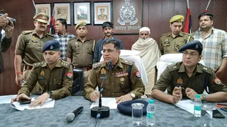 शामली पुलिस लाइन में प्रेसवार्ता के दौरान हत्याकांड़ के राजफाश की जानकारी देते एसपी एनपी सिंह व पीछे पुलिस हिरासत में मौजूद आरोपित। जागरण