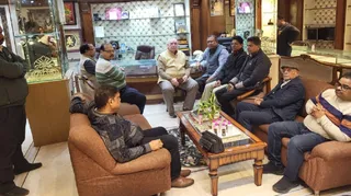 रघुनंदन ज्वेलर्स पर ठगी के बाद जमा व्यापारी। फाइल फोटो