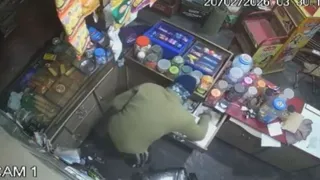 गल्ले से पैसे निकालते हुए चोर सीसीटीवी में कैद।
