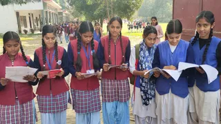 सामाजिक विज्ञान विषय की परीक्षा के बाद पेपर देखतीं छात्राएं। जागरण