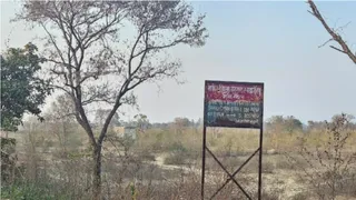 बदायूं-बिल्सी मार्ग किनारे लगा नई जेल का बोर्ड और सामने दिखाई देती जमीन। जागरण