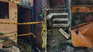 दिल्ली के मदनपुर खादर के रिहायशी मकान में गैस लीकेज से लगी आग। जागरण