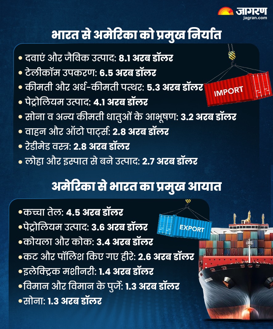 वहीं स्टील, एल्युमिनियम-कॉपर पर 50% का सेक्टोरल टैरिफ पहले की तरह जारी रहेगा। कुछ ऑटो कंपोनेंट्स पर 25% का शुल्क भी लागू रहेगा। सेवाओं के क्षेत्र में भारत ने 28.7 अरब डॉलर का निर्यात और 25.5 अरब डॉलर का आयात किया। कुल मिलाकर भारत को लगभग 44.4 अरब डॉलर का व्यापार लाभ मिला।