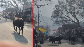 इस दौरान क्षेत्र में हड़कंप मच गया। स्थानीय व्यापारी दुकानें छोड़ दूर खड़े रहे। वाहन चालक भी सड़क से गुजरने में हिचकते रहे। इस दौरान जाम के हालात भी बनें। स्थानीय व्यापारियों ने हिम्मत कर गोवंशों को डंडे फटकार कर व पानी फेंककर किसी तरह भगाया। घटना का यह वीडियो इंटरनेट मीडिया पर तेजी से प्रसारित हो रहा है।