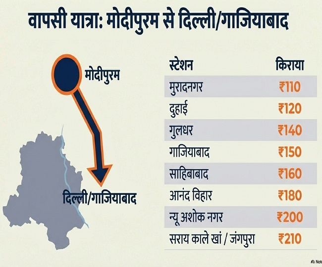 -मेरठ नार्थ स्टेशन-60 रुपये-मोदीपुरम स्टेशन-60 रुपये |