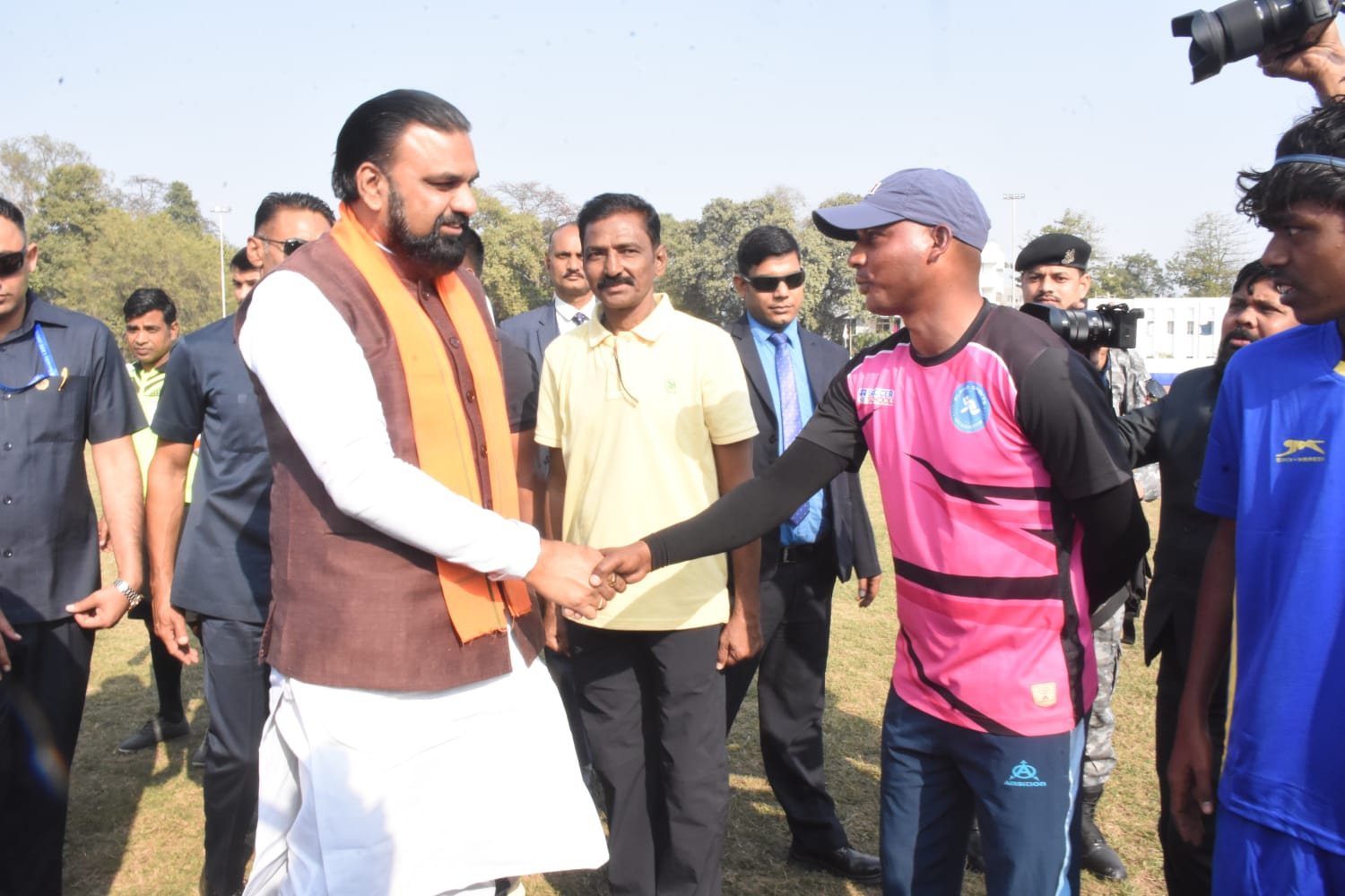 (खिलाड़ियों से परिचय प्राप्त करते डिप्टी सीएम।)