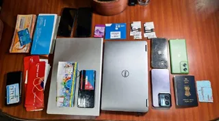 पुलिस द्वारा जब्त मोबाइल ,एटीएम कार्ड ,लैपटाप व पासबुक।