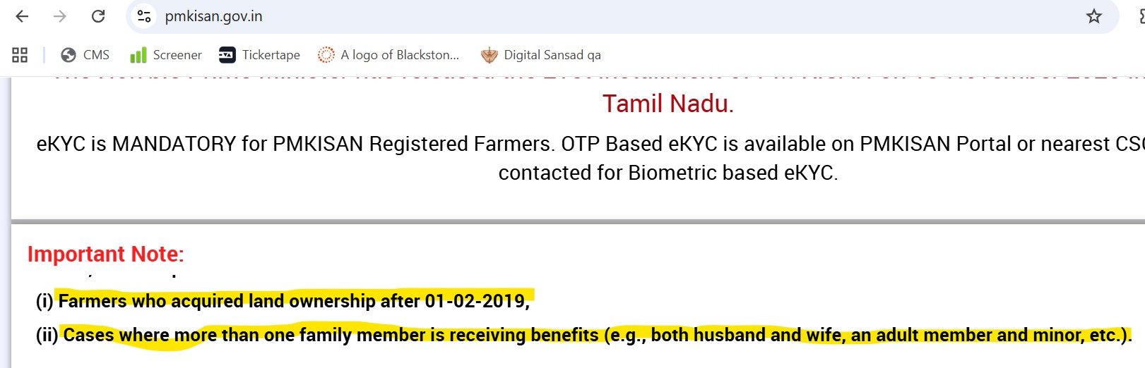 किसान योजना की वेबसाइट में आगे लिखा है कि किसानों से रिक्वेस्ट है कि ज्यादा जानकारी के लिए वे PM KISAN वेबसाइट/मोबाइल ऐप या किसान ई-मित्र चैटबॉट के Know Your Status (KYS) पर अपना एलिजिबिलिटी स्टेटस चेक करें।