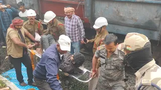 रेलवे ट्रैक से हाईवा चालक को रेस्क्यू करते पुलिस और सीआइएसएफ के अधिकारी-जवान।