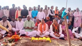 ग्राम भरहेचौरा के पास वैदिक मंत्रोच्चार के बीच हुआ भूमि पूजन एवं शिलान्यास।