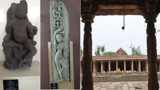 धार किले में सुरक्षित रखीं भगवान कुबेर व अर्धनारीश्वर की प्राचीन प्रतिमाएं, तीसरी तस्वीर में धार भोजशाला।