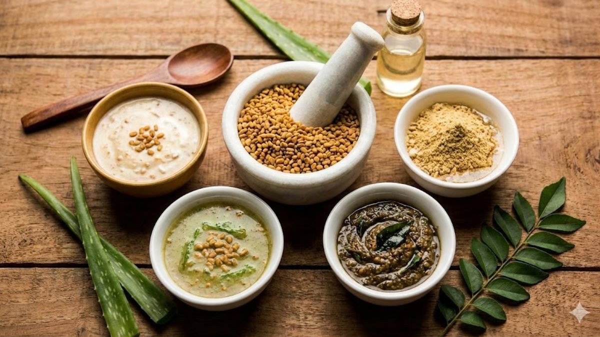 ऐसे में आयुर्वेद और नानी-दादी के नुस्खों में मेथी को बालों के लिए काफी फायदेमंद माना गया है। मेथी के दानों में प्रोटीन, निकोटिनिक एसिड और लेसिथिन भरपूर मात्रा में होता है, जो बालों की जड़ों को मजबूत बनाता है और डैंड्रफ से छुटकारा दिलाता है। आइए जानते हैं मेथी के 4 आसान और असरदार हेयर मास्क, जिन्हें आप घर पर बना सकते हैं।