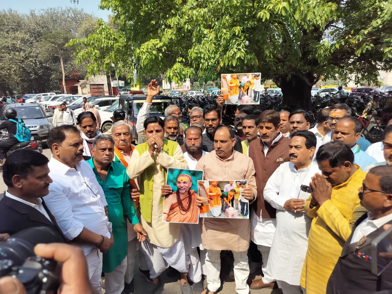वहीं दूसरी ओर स्वामी अविमुक्तेश्वरानंद के समर्थन में कांग्रेसी बुधवार की दोपहर जिला मुख्यालय पहुंचे। सरकार विरोधी नारों के साथ ही कांग्रेसियों ने इस प्रकरण को लेकर नारेबाजी भी की। उनके हाथ में विरोध जताने वाले पोस्टर भी थे। कांग्रेसियों की मांग थी कि झूठे आरोप लगाने वालों पर विधिक कार्रवाई की जाए।