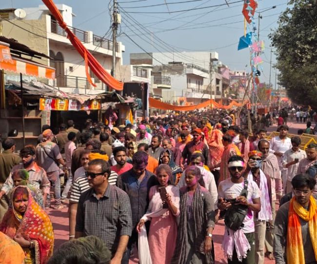 विश्व प्रसिद्ध रंगीली होली की छटा देखने के लिए मथुरा सहित देश-विदेश से बड़ी संख्या में श्रद्धालु सुबह से ही बरसाना पहुंचने लगे। श्रद्धालु “राधे-राधे” और “होरी खेलें...” के जयघोष के साथ रंगों में डूबे नजर आए। कई श्रद्धालुओं ने पारंपरिक वेशभूषा धारण कर ब्रज संस्कृति की झलक प्रस्तुत की।