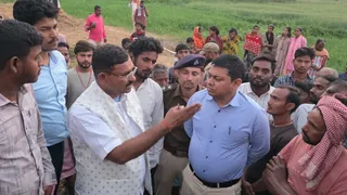 घटनास्थल पर लगी ग्रामीणों की भीड़ को समझाते अधिकारी। जागरण