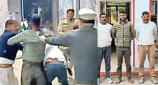 डिलारी में पुलिस के सामने मारपीट करते आरोपित l स्रोत वीडियो ग्रेब