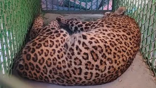 गाजियाबाद में पिंजरे में बंद तेंदुआ। फोटो: जागरण