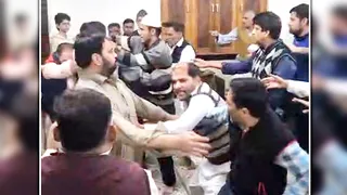 शिया मस्जिद में मारपीट करते लोग। सौ. प्रसारित वीडियो ग्रैब