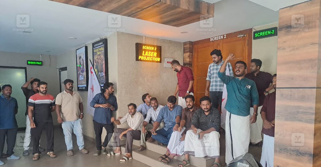 കോട്ടയത്തും പ്രതിഷേധവുമായി ഡിവൈഎഫ്ഐ പ്രവർത്തകർ എത്തി. അനശ്വര തിയേറ്ററിൽ 11 മണിക്കാണ് ആദ്യ ഷോ ആരംഭിച്ചത്. തുടർന്ന് ഉച്ചയ്ക്ക് 12 ഓടെ ആദ്യ പകുതി പിന്നിട്ട സമയത്താണ് പ്രതിഷേധവുമായി ഡിവൈഎഫ്ഐ പ്രവർത്തകർ എത്തിയത്. സിനിമ കാണാൻ 24 പേരാണ് എത്തിയിരുന്നത്. തുടർന്ന് പ്രദർശനം തടസ്സപ്പെടുത്തിയ ഇവർ സിനിമ കാണാൻ എത്തിയവരോട് ടിക്കറ്റ് നിരക്ക് തിരികെ നൽകാമെന്ന് ഉറപ്പ് നൽകി പുറത്തു പോകണമെന്ന് ആവശ്യപ്പെട്ടു.
