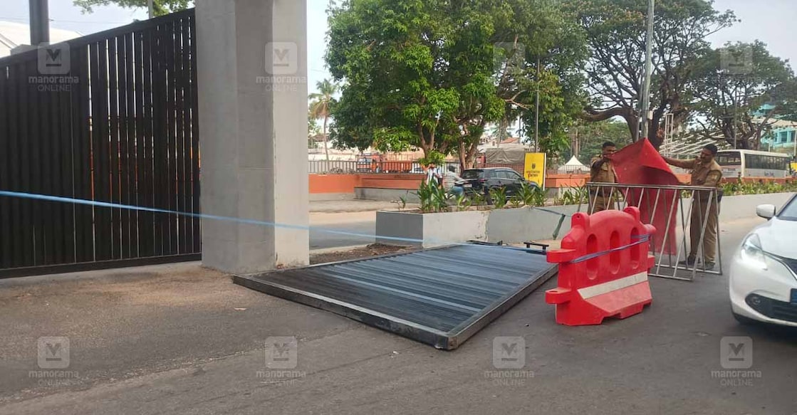 കൊച്ചി∙ നവീകരിച്ച കലൂർ രാജ്യാന്തര സ്റ്റേഡിയത്തിന്റെ പ്രവേശനകവാടത്തിൽ സ്ഥാപിച്ചിരുന്ന കൂറ്റൻ ഗേറ്റ് തകർന്നു വീണു. സമീപത്തു കൂടി സഞ്ചരിക്കുകയായിരുന്ന ഓട്ടോറിക്ഷ രക്ഷപെട്ടത് തലനാരിഴയ്ക്ക്. ഇന്നു വൈകിട്ട് അഞ്ചരയോടെയാണു സംഭവം. ഒട്ടേറെ പേർ ചേർന്ന് എടുത്തുയർത്താൻ ശ്രമിച്ചിട്ടും സാധിക്കാത്തതിനെ തുടർന്നു ഗേറ്റ് ഇപ്പോഴും വീണിടത്തു തന്നെ കിടക്കുകയാണ്.