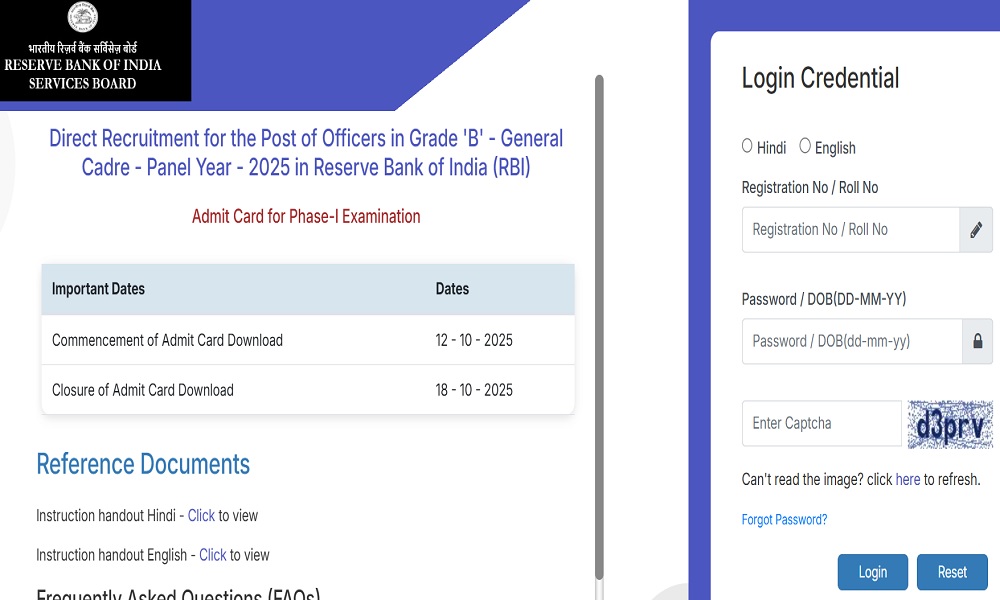 RBI Grade B Admit Card 2025 Link: आरबीआई ग्रेड बी ऑफिसर भर्ती परीक्षा के लिए एडमिट कार्ड जारी, एक क्लिक में करें डाउनलोड