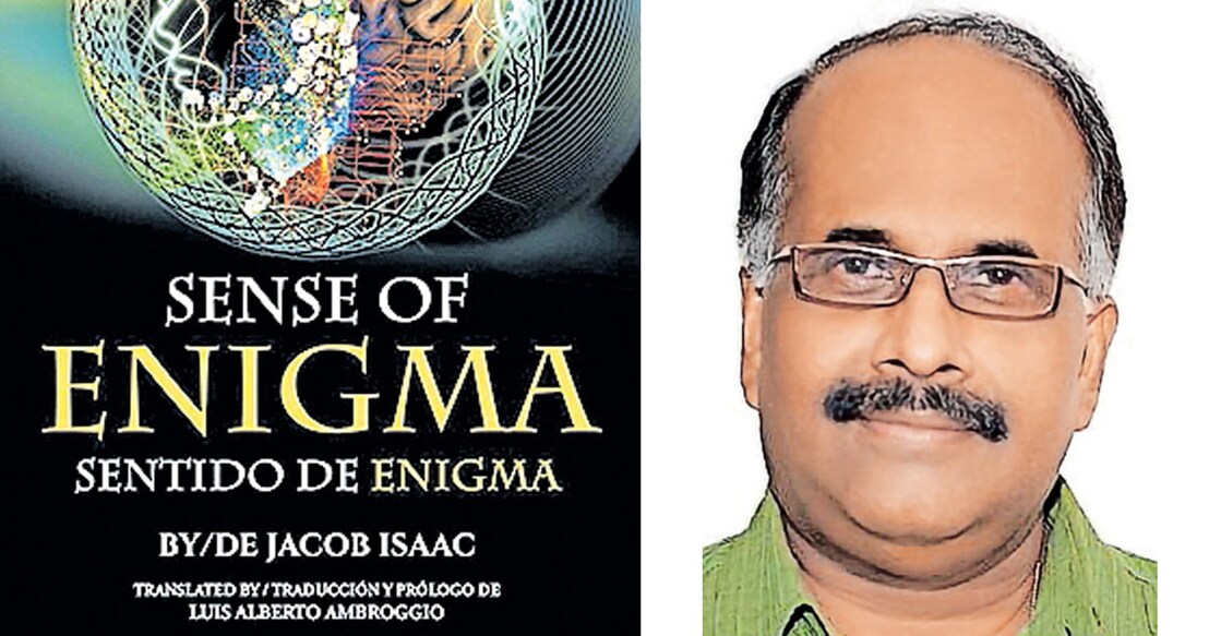 ഇംഗ്ലിഷ്-ഇന്ത്യൻ എഴുത്തുകാരനായ ജേക്കബ് ഐസക്കിന്റെ ‘സെൻസ് ഓഫ് എനിഗ്മ’ വീണ്ടും വായിക്കുന്നത് അങ്ങനെയാണ്. ഇരുപത്തിരണ്ട് ഇംഗ്ലിഷ് കവിതകളുടെ സമാഹാരം. കവിയും നോർത്ത് അമേരിക്കൻ സ്പാനിഷ് അക്കാദമി തലവനുമായ ലൂയിസ് ആൽബർട്ടോ യെംബ്രോജിയോയുടെ സ്പാനിഷ് ഭാഷയിലേക്കുള്ള പരിഭാഷയും അടങ്ങുന്നതാണ് പുസ്തകം.
