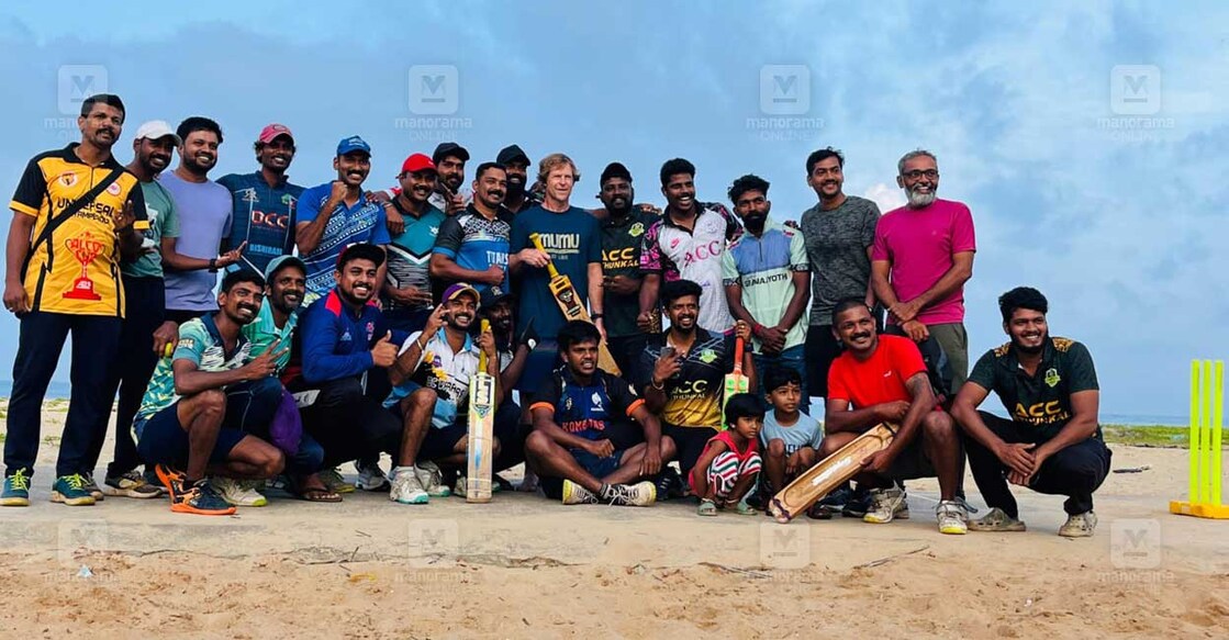 അർത്തുങ്കൽ ബീച്ചിൽ ക്രിക്കറ്റ് കളിച്ച് ‘പറക്കും ഫീൽഡർ’ ജോണ്ടി റോഡ്സ്– ചിത്രങ്ങൾ, വിഡിയോ