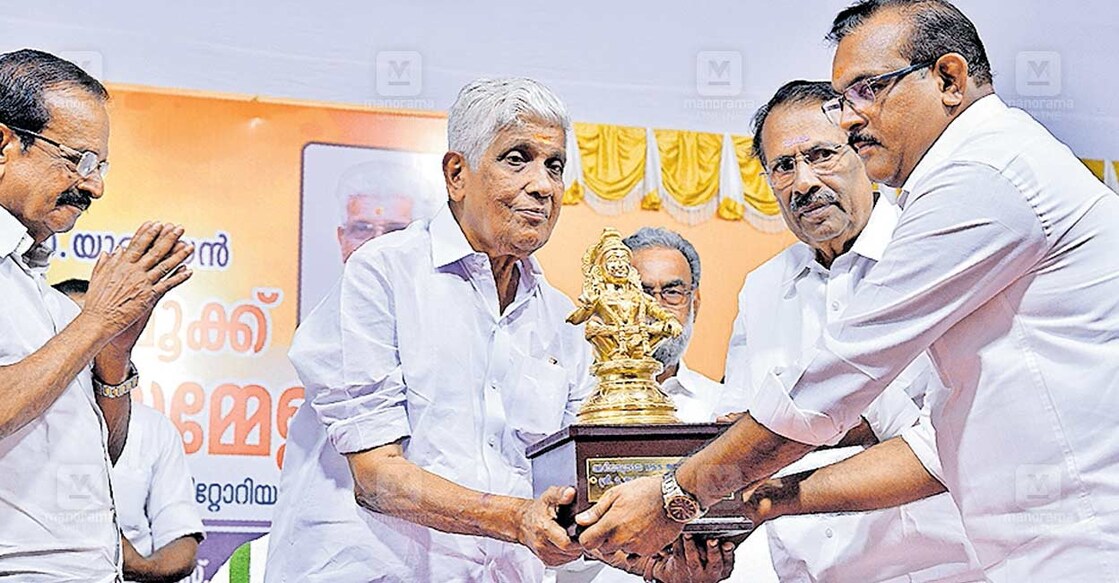 എൻഎസ്എസ് പ്രസിഡന്റ് ഡോ. എം.ശശികുമാർ അധ്യക്ഷത വഹിച്ചു. ട്രഷറർ എൻ.വി.അയ്യപ്പൻ പിള്ള, വൈസ് പ്രസിഡന്റ് എം.സംഗീത് കുമാർ, കരയോഗം റജിസ്ട്രാർ വി.വി.ശശിധരൻ നായർ, സെക്രട്ടറിയും ചങ്ങനാശേരി യൂണിയൻ പ്രസിഡന്റുമാരായ ഹരികുമാർ കോയിക്കൽ, യൂണിയൻ വൈസ് പ്രസിഡന്റ് എസ്.സുരേഷ് കുമാർ എന്നിവർ പ്രസംഗിച്ചു. ചങ്ങനാശേരി താലൂക്ക് യൂണിയന്റെ ഉപഹാരമായി അയ്യപ്പവിഗ്രഹം ജി.സുകുമാരൻ നായർക്ക് എൻഎസ്എസ് സെക്രട്ടറിയും താലൂക്ക് യൂണിയൻ പ്രസിഡന്റുമായ ഹരികുമാർ കോയിക്കലും വൈസ് പ്രസിഡന്റ് എസ്.സുരേഷ് കുമാറും ചേർന്നു സമ്മാനിച്ചു. English Summary: